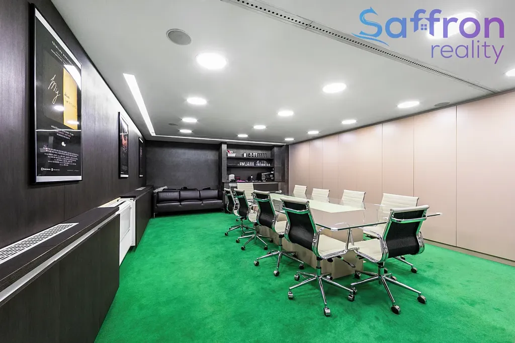 Jedná se o nebytovou jednotku o celkové podlahové ploše 155 m², která je dispozičně řešena jako kombinace samostatných kanceláří, otevřených pracovních prostor a reprezentativního zázemí. Součástí je vstupní recepce, prostorná zasedací místnost, kuchyňka a sociální zázemí včetně sprchy. Prosklené příčky dodávají interiéru vzdušnost a zároveň umožňují flexibilní uspořádání jednotlivých částí dle potřeb nového majitele.
