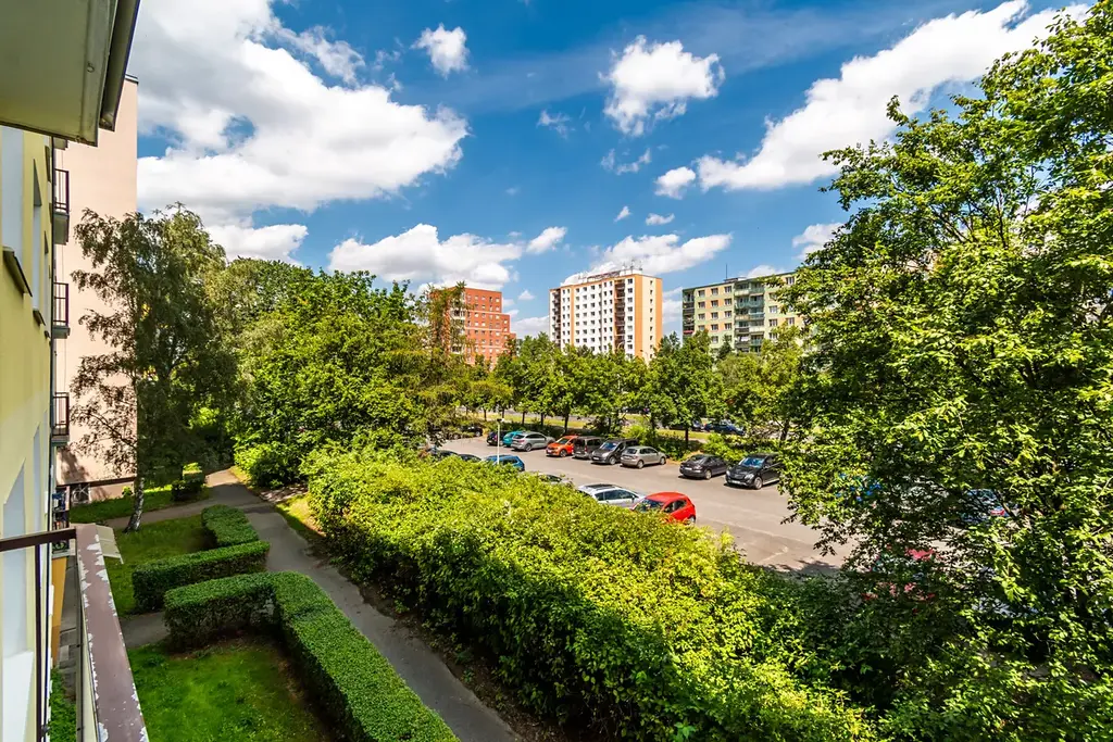 Dispozice bytu tvoří obývací pokoj vybaven pohodlnou sedačkou, jídelním setem a plně vybaveným kuchyňským koutem, samostatná ložnice s manželskou postelí a velkou vestavěnou skříní, koupelna se sprchovým koutem, WC, umyvadlem a pračkou. Nechybí také praktická lodžie umístěná na mezi patře nebo sklepní kóje.Byt je ideální pro jednotlivce nebo pár, kteří hledají stylové a klidné bydlení s dobrou dostupností do centra. K dispozici od 1.7.2026.