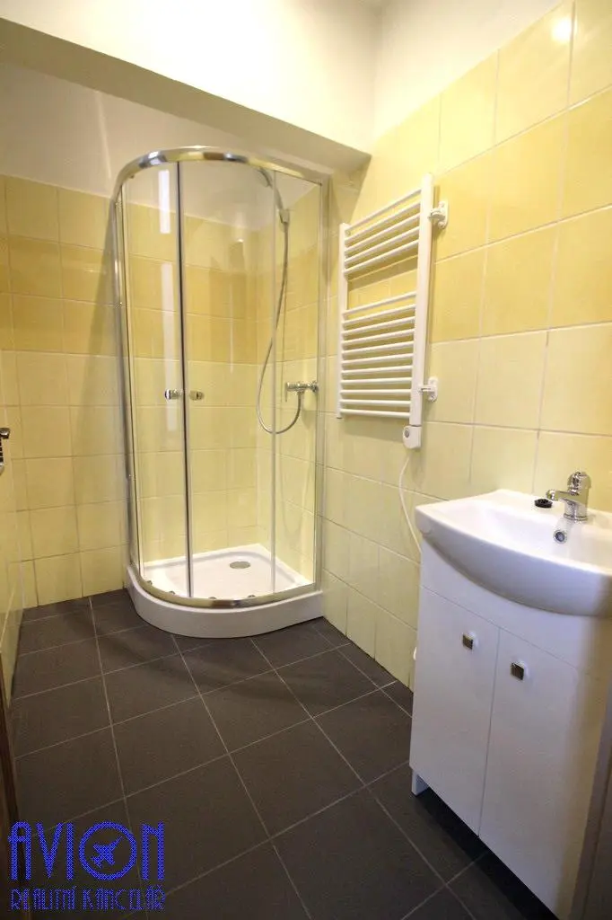 Jedná se o světlý byt s prostornými místnostmi, orientovaný do klidného vnitrobloku (kuchyň) s francouzským oknem s možností přímého vstupu na dvorek objektu a do ulice na jih s elektrickými předokenními roletami (obývací pokoj a ložnice). Částečně vybavený (kuchyňská linka, sporák, pračka). V ložnici (zadním pokoji) je vestavěné patro na spaní, policová sestava a menší skříň. Koupelna se sprchovým koutem, samostatná toaleta.