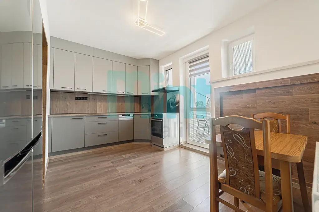 Byt je orientován na jih a prošel kompletní rekonstrukcí v roce 2025, což zahrnuje zděné jádro, plovoucí podlahy, novou elektřinu a moderní interiérové dveře a bezpečnostní vchodové dveře. V kuchyni se nachází nová kuchyňská linka, která je plně vybavena myčkou, indukční varnou deskou, lednicí a pračkou, což jistě potěší každého nájemce. K bytu náleží také balkon, na kterém lze vychutnávat slunečné dny. Topení a ohřev vody zajišťuje moderní kondenzační plynový kotel.