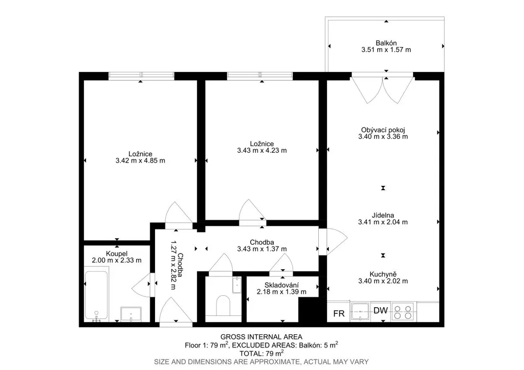 Ostatní vybavení není zařízeno a byt tak dává prostor k realizaci svému novému uživateli.