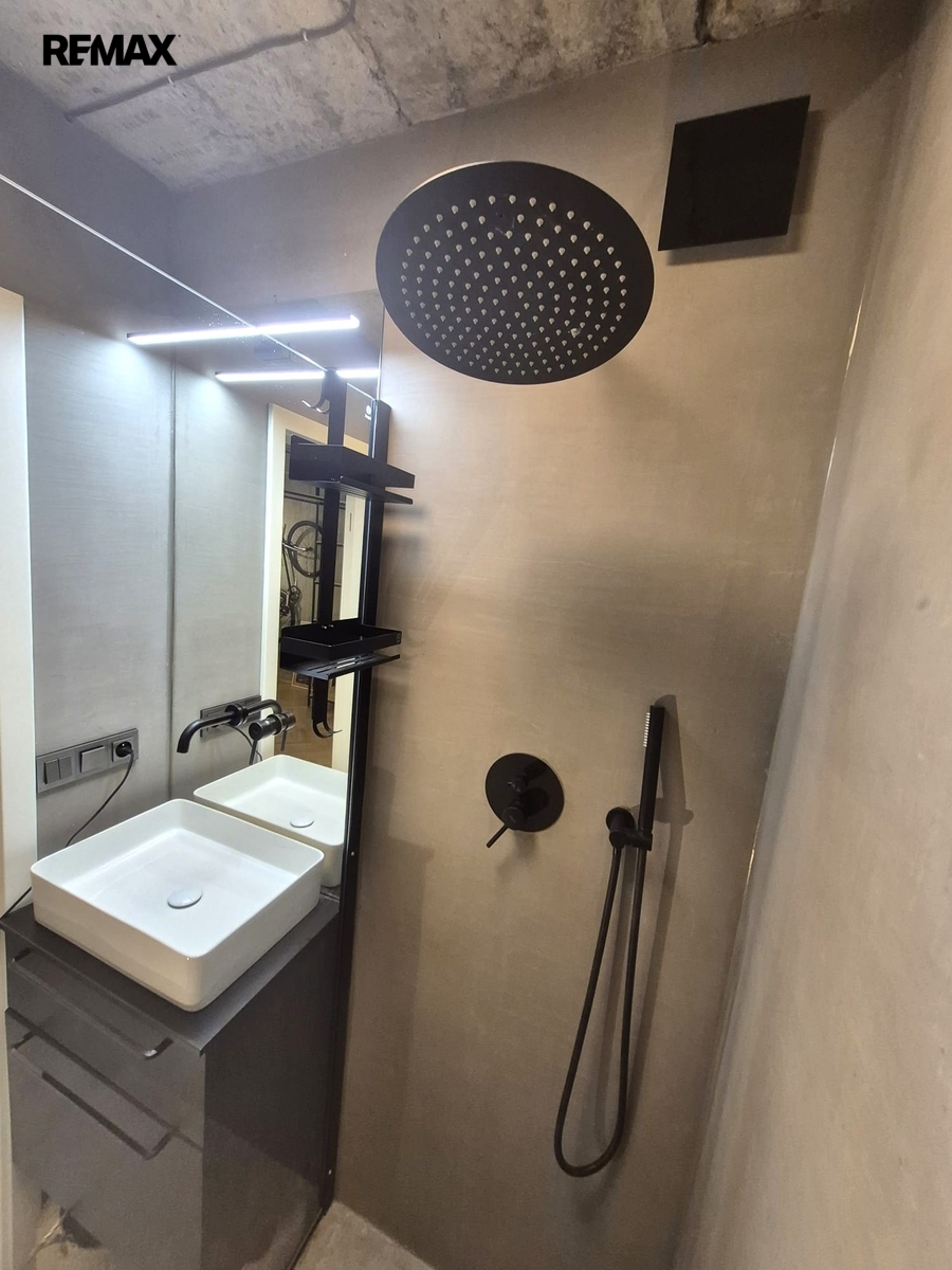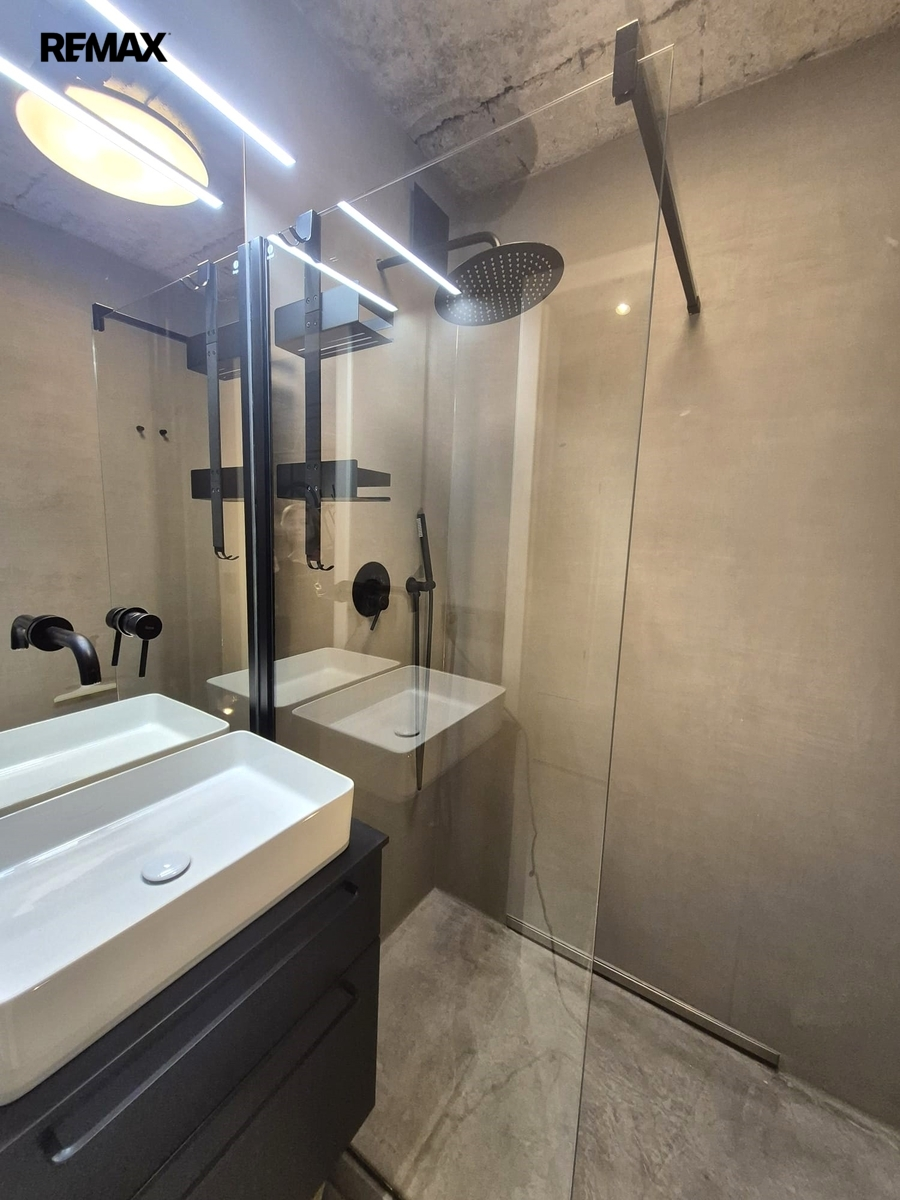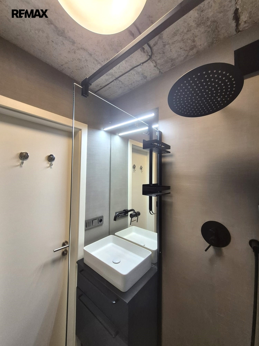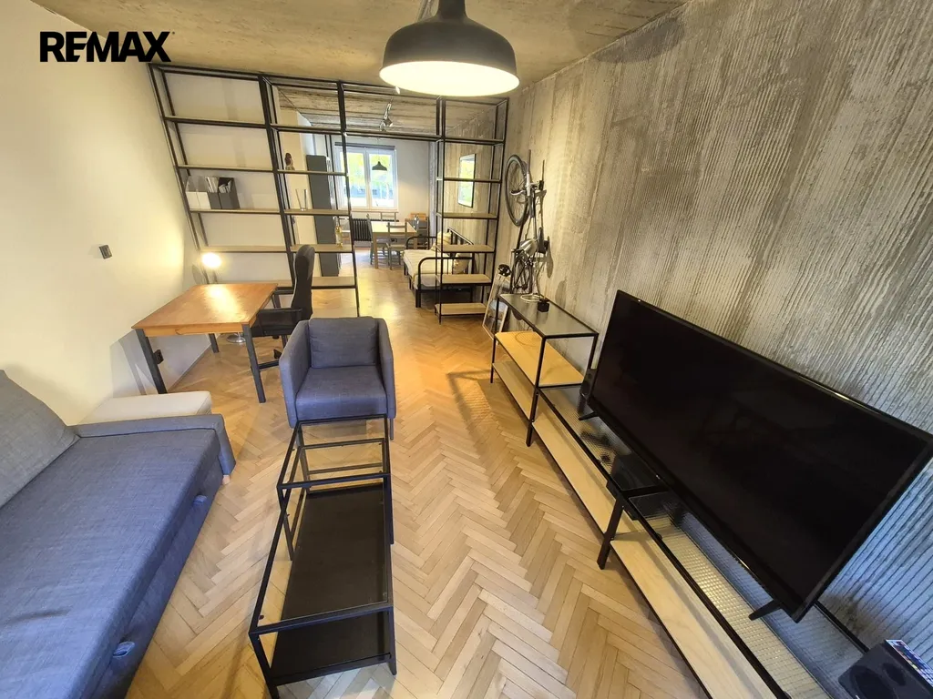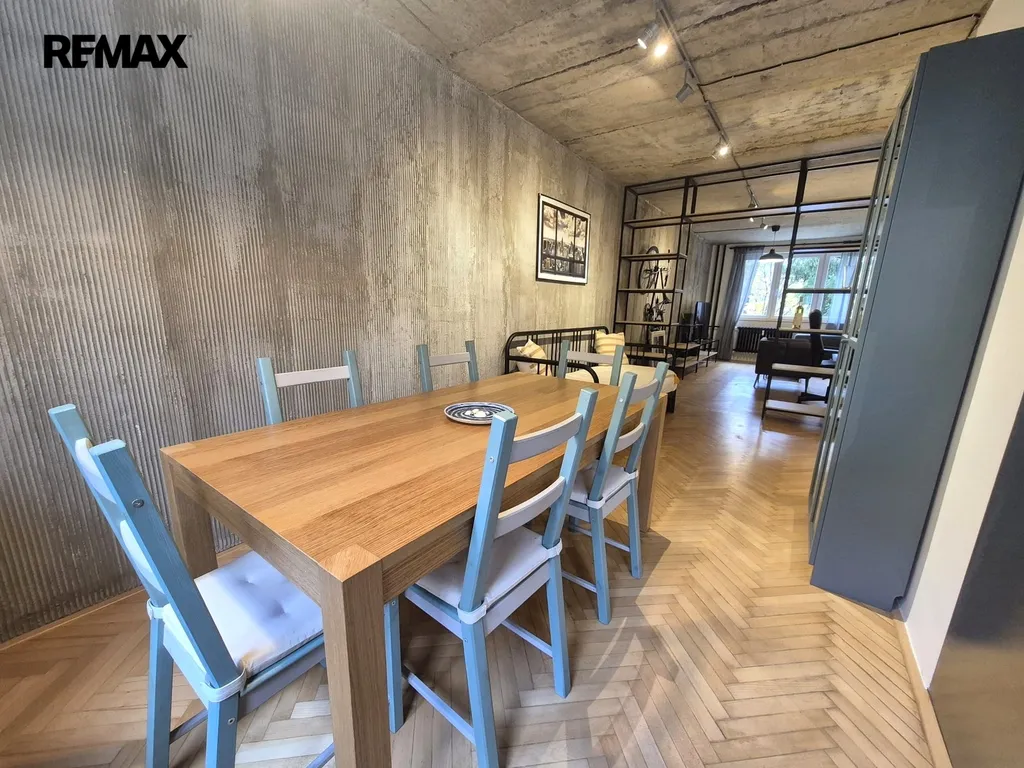 Nabízíme k pronájmu jedinečný byt 2+kk (původně 4+1), o podlahové ploše cca 73 m2 + lodžie 4 m2 , v 1. patře bytového domu v pražských Záběhlicích, který prošel promyšlenou rekonstrukcí a nabízí originální atmosféru industriálního stylu. Úpravou dispozice vznikl vzdušný, otevřený prostor s podlahovou plochou cca 41 m², propojující kuchyň, jídelnu a obývací část. Jednotlivé části jsou pouze opticky rozděleny a navazují na předsíň. Kuchyňská linka je plně vybavena: plynová varná deska, elektrická trouba, myčka, lednice s mrazákem a pračka se sušičkou. Z otevřené předsíně je vstup do koupelny se sprchovým koutem a samostatné toalety. Ložnice o velikosti cca 23 m² nabízí 7 vestavných skříní a přímý vstup na zasklenou lodžii. Další úložné prostory zajišťuje vestavná skříň v předsíni. Orientace bytu na západ (kuchyň, jídelna) a východ (obývací část, ložnice, lodžie) zajišťuje dostatek denního světla po celý den.