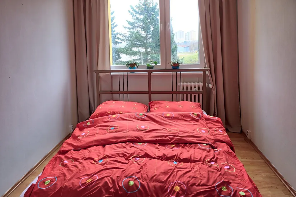 Dále se zde nachází ložnice s postelí a skříní. V koupelně se nachází rohová vana, umyvadlo, zrcadlo a Wc. V bytě jsou laminátové podlahy a v koupelně dlažba. Vytápění zajišťuje vytápění s radiátory.