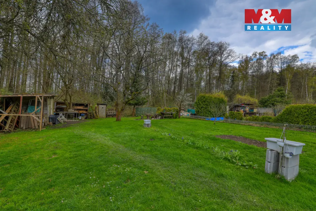 Součástí je udržovaný rohový pozemek o rozloze 597 m² se vzrostlými ovocnými stromy, jezírkem, ohništěm, skleníkem (20 m²) a pergolou (5,6 m²). K dispozici je také kůlna s dřevníkem a nářadím.