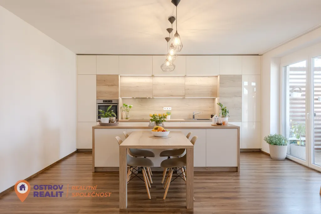 Přízemí domu je navržené s důrazem na praktičnost i pohodlí každodenního života. Srdcem domu je prostorný obývací pokoj propojený s kuchyňským koutem, kde se odehrává většina rodinného života. Kuchyň je vybavena vestavěnými spotřebiči a nabízí dostatek pracovní plochy pro vaření i společné chvíle s rodinou nebo přáteli.