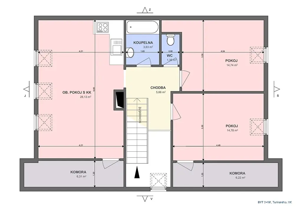 Tento byt je určený pro klienty, kteří hledají dlouhodobý pronájem v Hradci Králové, bydlení v podkrovním bytě a klidné lokalitě.