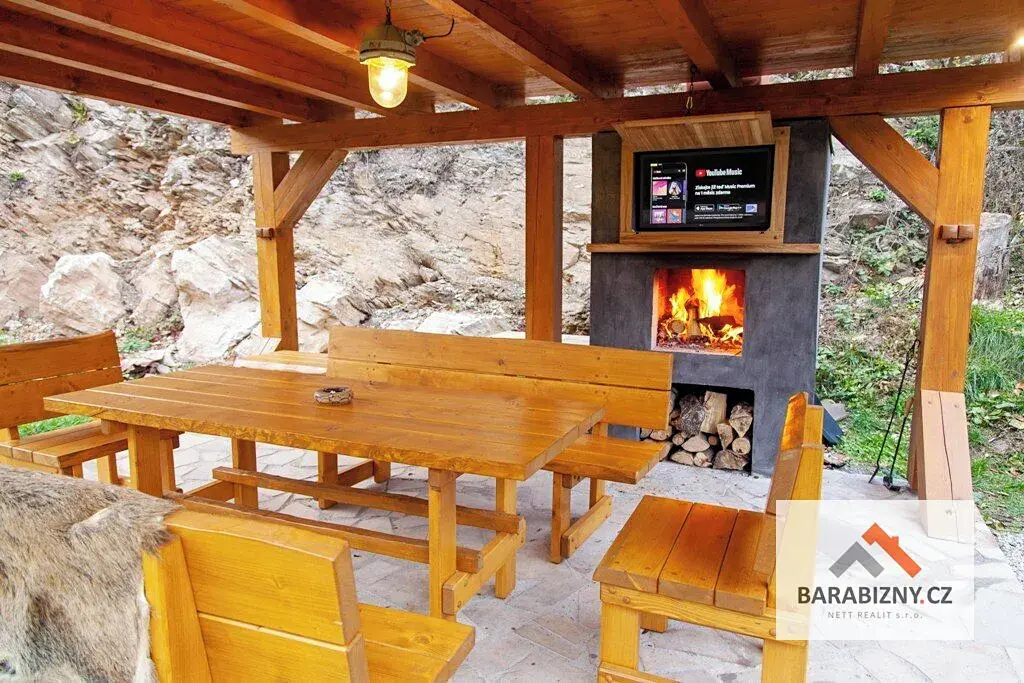 Prodej horské chaty, nedaleko sedačkové lanovky Kejnos, umístěné v krkonošském středisku Benecko. Chata byla postavena v roce 1975, v pozdějších letech pravidelně rekonstruovaná, aktuálně využívaná k rekreačním účelům. K chatě náleží pozemek o výměře 1.345m2 (včetně zastavěné plochy 74m2), na kterém je umístěna masivní pergola s dřevěným sezením. Dominantou zahrady je obnažená skála. Možné využití i menší terasy s ohništěm. Chata orientovaná čistě na jih, celý den velmi slunné místo. Dispozice: 1.NP – vstup, zádveří, společenská místnost s krbem, koupelna s WC, samostatné WC, komora; 2.NP – obývací pokoj, kuchyně s jídelnou, ložnice s balkonem; podkroví – 2x ložnice, balkon. Za chatou se nachází dřevník, původně plánované jako prostor pro saunu. Zaveden vodovod, el. energie 230/400V, plyn, odpady svedeny do kanalizace, vytápění ústřední plynové – kondenzačním kotlem (slouží i na ohřev teplé vody) nebo krbem. Kompletní pokrytí chaty i zahrady internetem. Celoročně výborná dostupnost po asfaltové komunikaci. Parkování na vlastním parkovišti. Perfektní dostupnost lyžování. PENB G. Doporučujeme prohlídku.