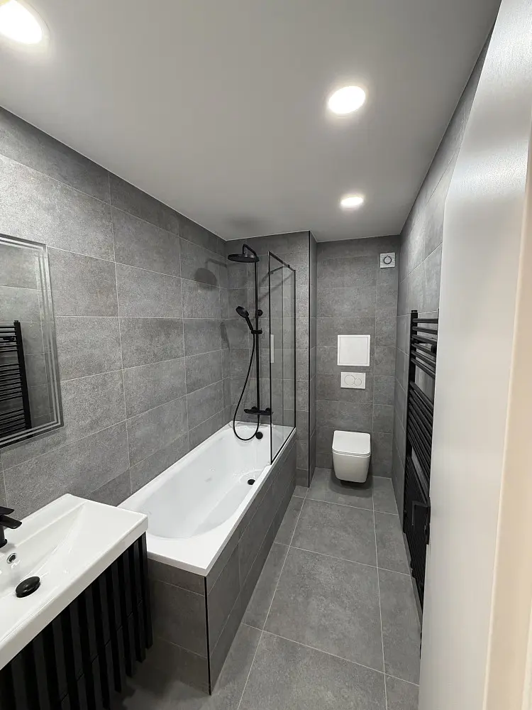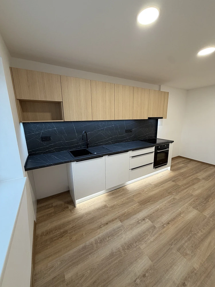 Byty jsou nově zrekonstruované v moderním, čistém stylu s důrazem na kvalitu a funkčnost. Samozřejmostí jsou nové podlahy, interiérové dveře, designové koupelny a nové kuchyňské linky (myčka, trouba, indukce, digestoř). Použité materiály jsou odolné a navržené pro dlouhodobé bezproblémové užívání.
