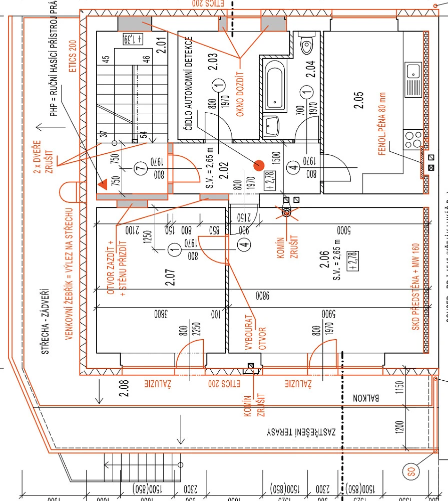 Byt č. 2 se nachází v prvním patře domu (2. NP), rozloha bytu je 79 m² (+ terasa 28 m²), dispozice 3+1: