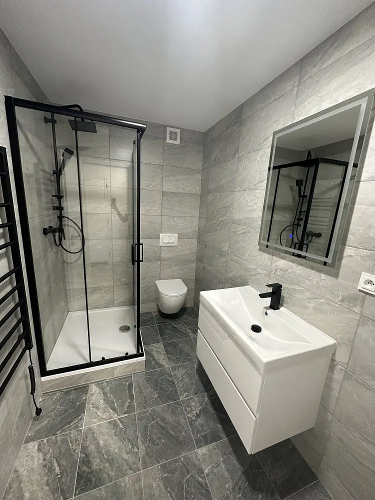 Byt je kompletně nově zrekonstruován (nové vinylové podlahy - vysoká odolnost, nově vymalováno, nové dveře), je zde nová podsvícená kuchyňská linka s myčkou, lednicí a mikrovlnnou troubou, nová koupelna s elektrickým žebříkem.