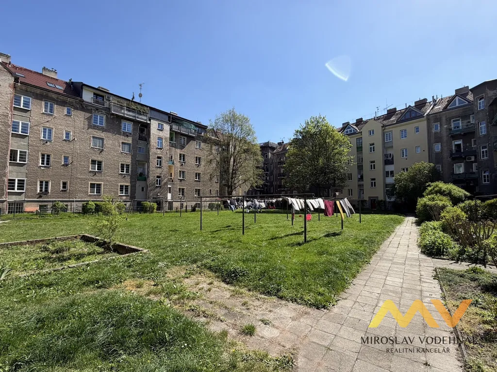 Byt je orientován do klidného vnitrobloku se zelení, což zajišťuje příjemné a tiché bydlení i přes výbornou polohu v centru města.
