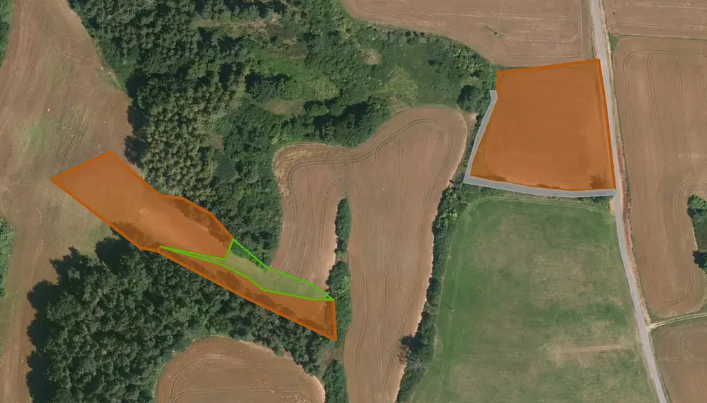 Nabízíme ke koupi soubor zemědělské půdy o celkové výměře 44.359m2 nacházející se v katastrálním území Tojice zapsané na listu vlastnictví č. 824 (37.231m2) a kat.území Vrčeň na listu vlastnictví č. 983 (7.128m2). Pozemky jsou převážně využívané jako orná půda a jsou pronajaté místní společnosti do konce zemědělského roku 2030.