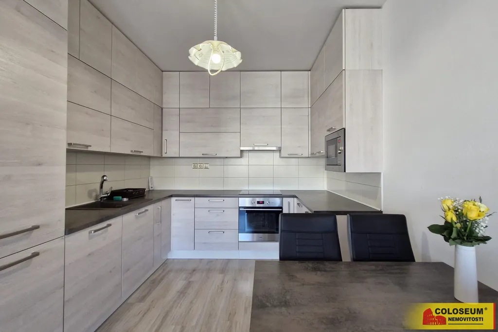 Byt se pronajímá plně vybavený nábytkem i spotřebiči. Moderní kuchyňská linka disponuje vším potřebným, včetně velké lednice, myčky o šířce 60 cm, indukční varné desky, trouby a mikrovlnné trouby. Koupelna je vybavena pračkou s horním plněním. Velkým benefitem je také vysokorychlostní optické připojení k internetu, které je již zahrnuto v ceně nájmu, což ocení zejména ti, kteří pracují z domova. K dispozici je rovněž prostorná kolárna v přízemí budovy.