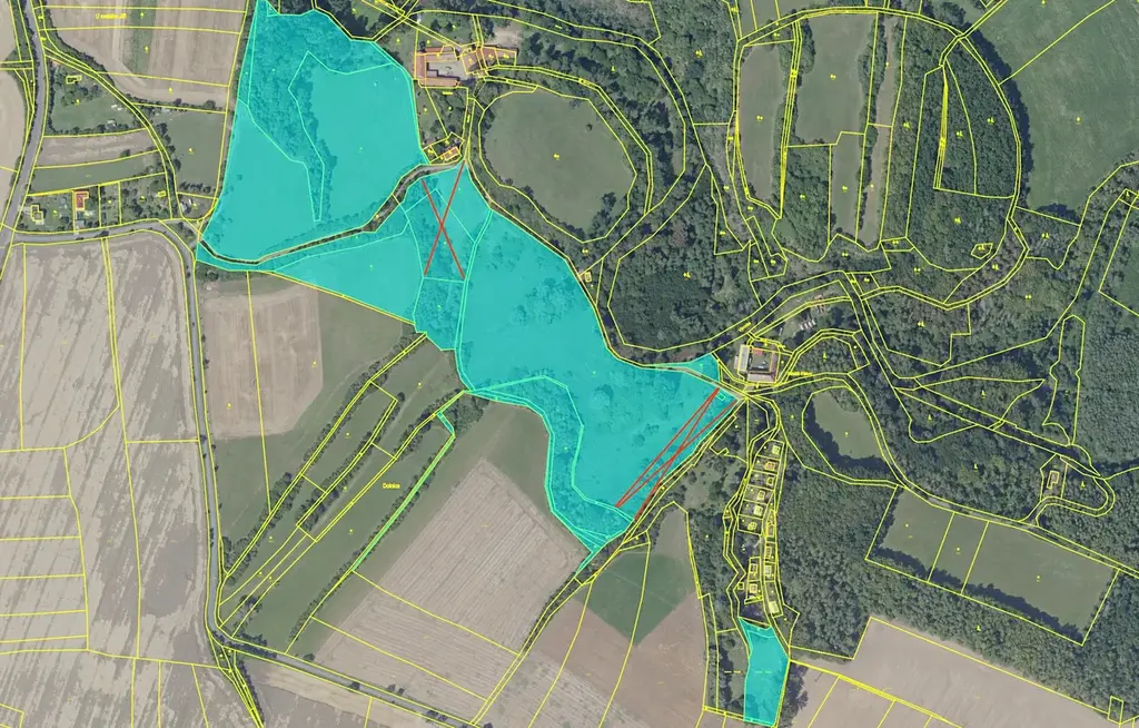Prodávané parcely číslo 723/2, 723/3, 971/1, 971/2, 972/1, 972/3, 974/1, 974/5, 994, 995, 999, 1003, 1005, 1009 (část), 1010, 1014/3, 1028, 1029, 1031, 1032, 1033, 1035, 2601, 2602 jsou vedeny na listu vlastnictví číslo 1322 a mají celkovou prodejní výměru 87.548 m2. Část nabízené plochy je ve stavu pokročilé sukcese, což představuje hotový ekosystém. Je to ideální základ pro projekt přírodní zahrady nebo biotopu.