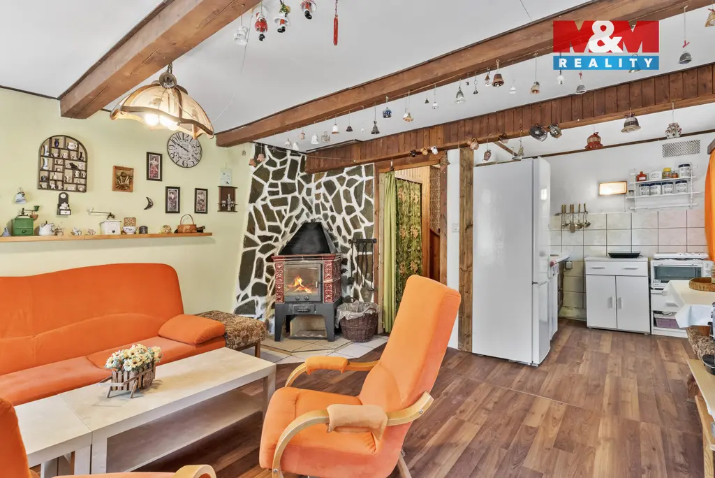 Hledáte klidné místo, pohodu a klid uprostřed krásné přírody, tak právě Vám nabízíme k prodeji chalupu v katastru Kyjova u Krásné Lípy v části obce Dlouhý Důl. Dispozice 4+KK je rozložena do IIINP. V INP obývací pokoj s krbovými kamny a kuchyňským koutem. Koupelna se sprchovým koutem a samostatné WC. Dřevěné schodiště do patra kde jsou 3 pokoje. Malý sklep se vstupem v chodbě pod schodištěm. Dominantou chalupy, která je na LV zapsaná jako stavba pro rodinnou rekreaci a má své č. ev. 72 je rozsáhlá zahrada o CP 1046 m². Objekt byl postaven v minulosti společně s majiteli sousední chalupy, ale každá nemovitost má svá popisná čísla a soukromí, díky uspořádání pozemků okolo nemovitosti. Na zahradě vlastní vrt s pitnou vodou. Ideální k rekreaci, případně k celoročnímu bydlení pro milovníky klidu a přírody. V docházkové vzdálenosti možnost koupání v Kyjovské přehradě a ve 2km vzdálené Doubici vyhlášená Doubická hospůdka a další přírodní krásy v okolí. Budu se těšit s Vámi na prohlídce.