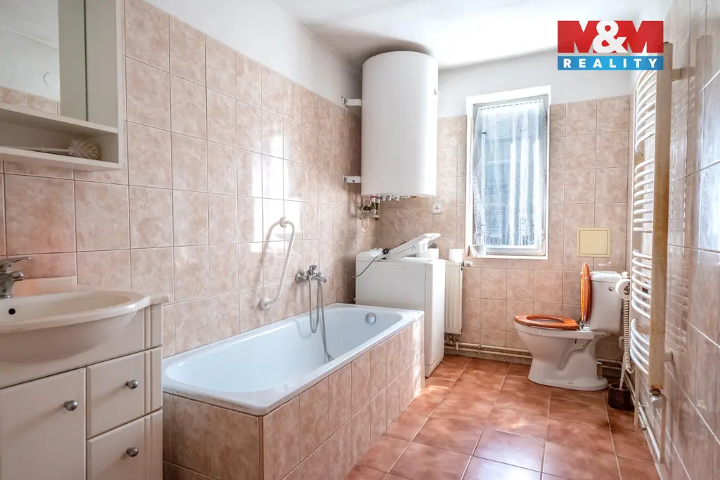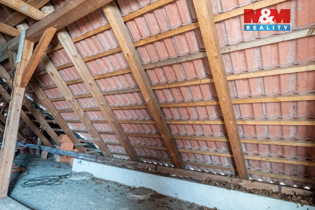 Součástí domu je garáž pro jedno osobní vozidlo, která je stavebně propojena s obytnou částí. Nemovitost je postavena z cihelného zdiva, střešní krytinu tvoří pálené tašky. Vytápění zajišťuje elektrický kotel s rozvodem do radiátorů. Dům je napojen na obecní vodovod a nově vybudovanou obecní kanalizaci.