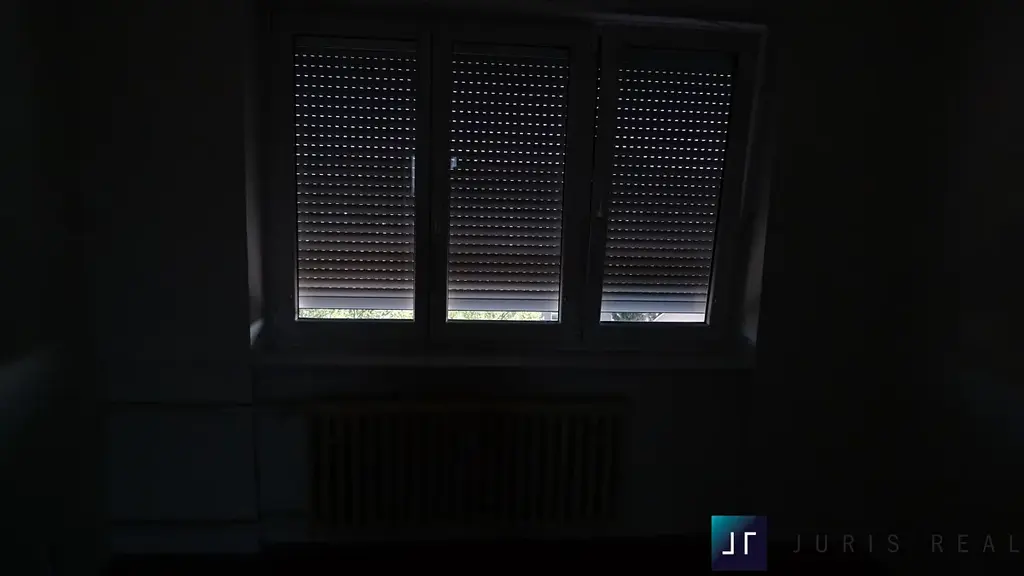 Nová plastová okna, dřevěné parkety, elektrická stínící roleta na dálkové ovládání v obývacím pokoji.