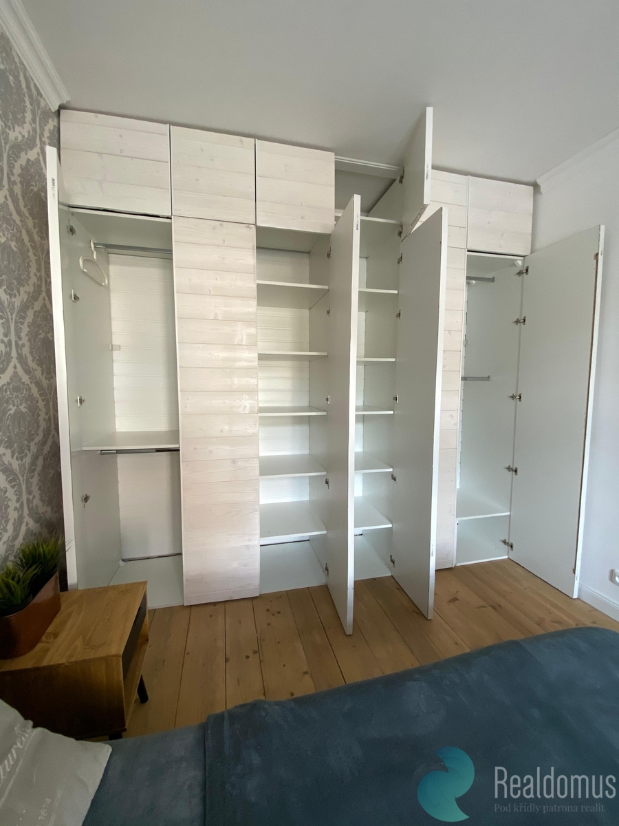 Byt je kompletně vybaven a to kuchyňskou linkou (el. trouba, indukční deska, digestoř, myčka, lednice); manželská postel, TV komoda, konferenční stolek, židle, LCD televize, gauč. V koupelně pračka a velký sprchový kout. Byt je po povedené kompletní rekonstrukci – nová plastová okna, podlahy, rozvody vody a elektřiny, samostatný bojler.