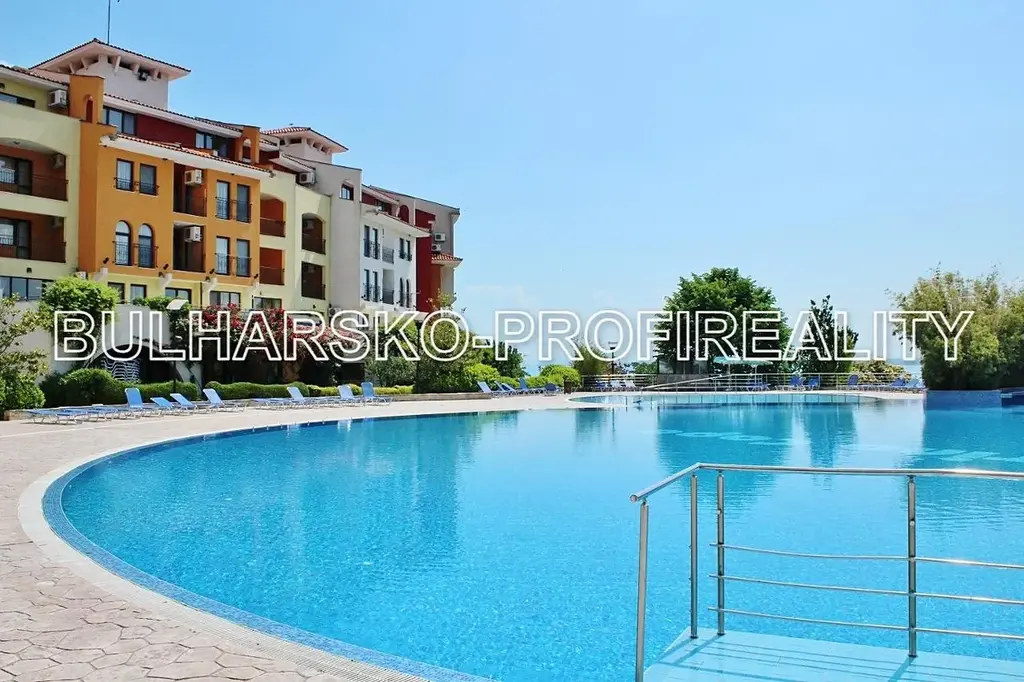 Bulharsko- PĚKNÝ APARTMÁN 2+kk (64 m²) | ČÁSTEČNÝ VÝHLED NA MOŘE | 2 BAZÉNY | 1. LINIE | Aheloy 92 990 Euro
