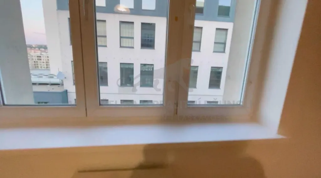 Okno je situováno na východní stranu, výhled směrem na Smíchovské nádraží, Vyšehrad a žižkovskou televizní věž.