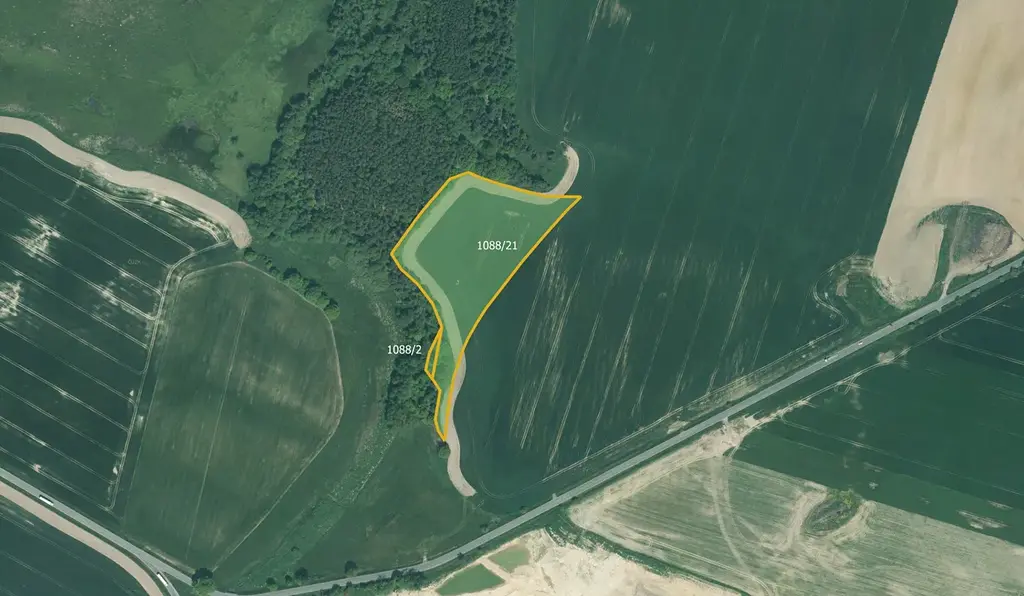 Pozemky jsou zapsány na listu vlastnictví č. 861. Jedná se o sousedící pozemky tvořící jeden zemědělský celek, jejichž hranice přirozeně vymezuje okolní lesní porost: parc. č. 1088/2 a parc. č. 1088/21