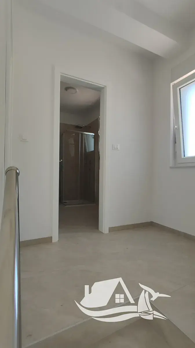 První patro nabízí tři ložnice a dvě koupelny, čímž vzniká komfortní noční zóna pro rodinu nebo hosty. Ve druhém patře se nachází další ložnice, koupelna, druhá kuchyně s jídelnou a obývací pokoj se vstupem na krytou terasu s panoramatickým výhledem na moře a město. Právě tato koncepce umožňuje využití domu jako dvou samostatných apartmánových celků.