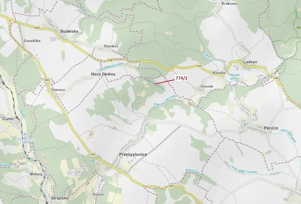 Lesní pozemek o výměře 7 901 m2, parcelní číslo 774/2, podíl 1/1, katastrální území Přemyslovice, obec Přemyslovice, obec s rozšířenou působností Prostějov, okres Prostějov, Olomoucký kraj. Po těžbě.
