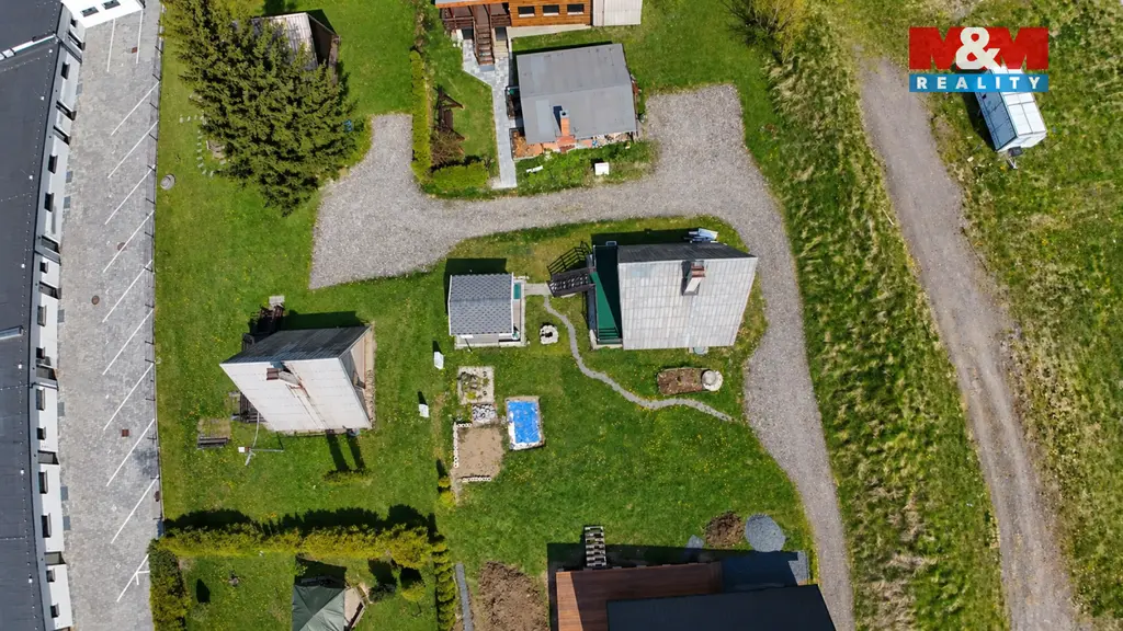 Součástí je také altánek s grilem a prostor připravený pro venkovní bazén. Velkou výhodou je napojení na obecní vodovod i kanalizaci. Příjezd je zajištěný až k chatě po vlastním pozemku, místo pro zaparkování pro 2 vozidla přímo u chaty.