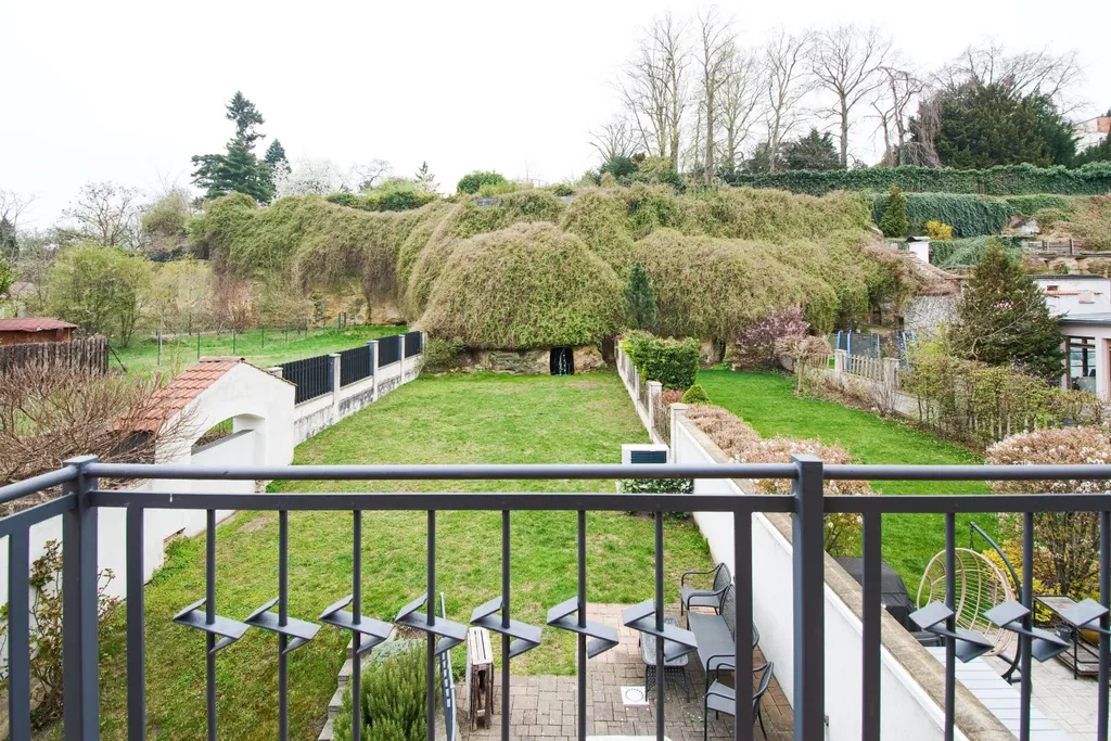 Prostorný řadový rodinný dům nabízí 6 ložnic, 5 koupelen, celkovou plochu 350 m2. Tento dům je nezařízený, vybavený vestavěnými skříněmi, podlahovým topením v 1. patře, klimatizací, plynovým kotlem a tepelným čerpadlem. Pozemek 226 m2, z toho zahrada 93 m2.