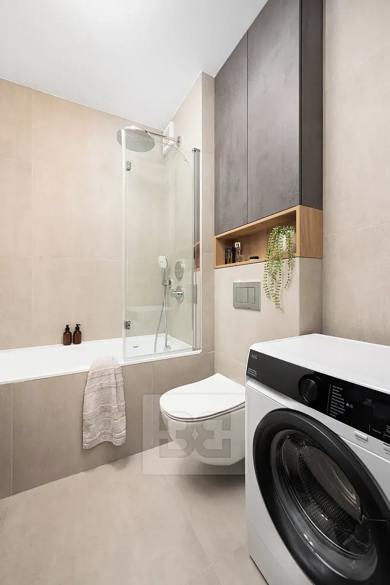 Velkým benefitem bytu je kompletní řešení stínění – k dispozici jsou venkovní žaluzie, vnitřní žaluzie i zatemňovací závěsy, které zajistí maximální komfort a soukromí během celého dne.