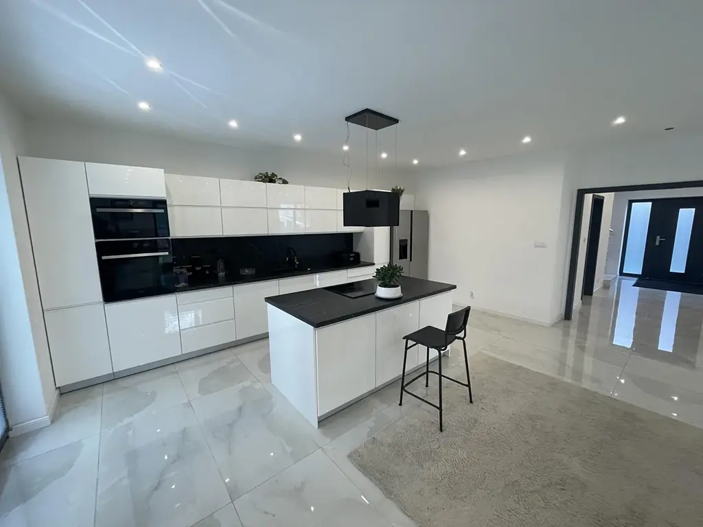 Nabízíme k prodeji luxusní rodinný dům v Jenči u Prahy. Dvoupodlažní moderní dům o užitné ploše 192 m2 a dispozičním řešení 4+1 se nachází v klidném zákoutí uprostřed obce Jeneč. V přízemí domu je prostorný a světlý obývací pokoj propojený s velkorysou kuchyní a jídelnou, dále prostorná vstupní hala se schodištěm a koupelna. V patře domu v klidové zóně jsou 3 útulné ložnice (20, 24 a 27 m2), šatna, koupelna a technická místnost s dalším wc. Dům je novostavba s energetickou náročností kategorie C. Vystavěn je z Porothermu, střešní krytina pálená taška Tondach. Vytápění plynovým kombinovaným kondenzačním kotlem, v přízemí podlahové topení, v patře otopná tělesa. Jako podlahová krytina byla použita luxusní velkoformátová dlažba, v ložnicích je kvalitní vinyl. Technické řešení domu umožňuje i dvougenerační bydlení, tj. rozdělení na 2 samostatné bytové jednotky. V současné době není dům ještě zkolaudován, a to z důvodu absence fasády. Je ale již užíván k bydlení na základě Rozhodnutí o předčasném užívání. Zhotovení zateplené fasády je zahrnuto v ceně domu, nový majitel si může vybrat barvu i provedení. Obec Jeneč je plně vybavená moderní obec v těsné blízkosti Prahy (pár minut autem i PIDem).