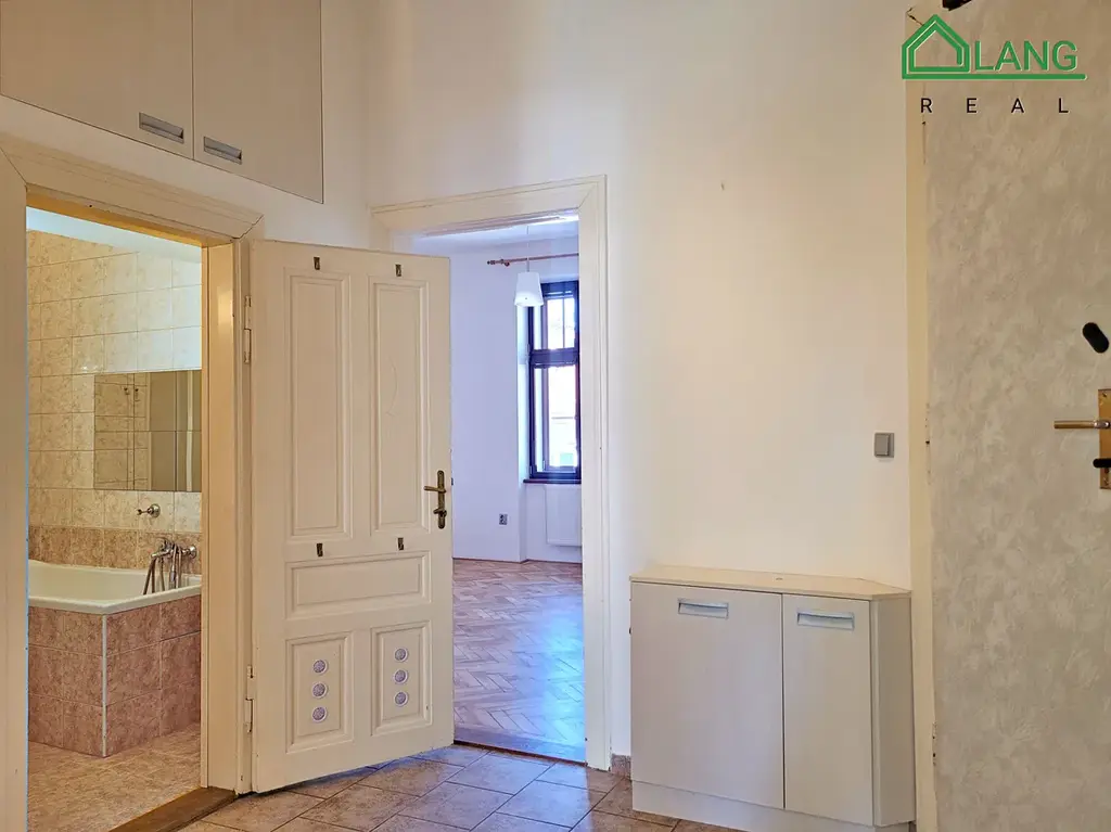 Byt s vysokými stropy, o dispozici 3+kk disponuje dvěma ložnicemi, obytným pokojem s kuchyňským koutem, velkou předsíní s mnoha úložnými prostory, koupelnou a samostatným WC.