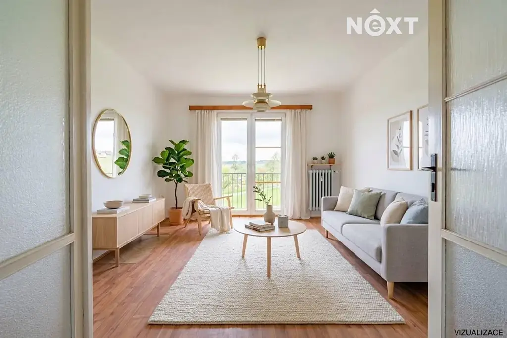 Dispozičně byt nabízí dvě samostatné obytné místnosti, kuchyň, koupelnu a další zázemí. Z obývacího pokoje je vstup na balkon, odkud si můžete vychutnat krásný výhled do okolní krajiny. Díky umístění ve vyšším patře je byt světlý a působí vzdušně.