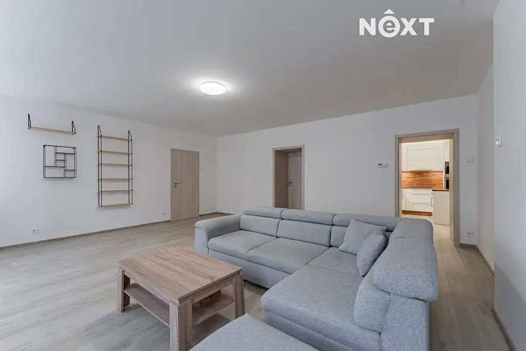 Byt o celkové výměře 109 m² nabízí dostatek prostoru i světla. Dispozice zahrnuje tři neprůchozí pokoje, prostorný obývací pokoj, kuchyni s kuchyňským koutem a velkou koupelnu se sprchovým koutem.