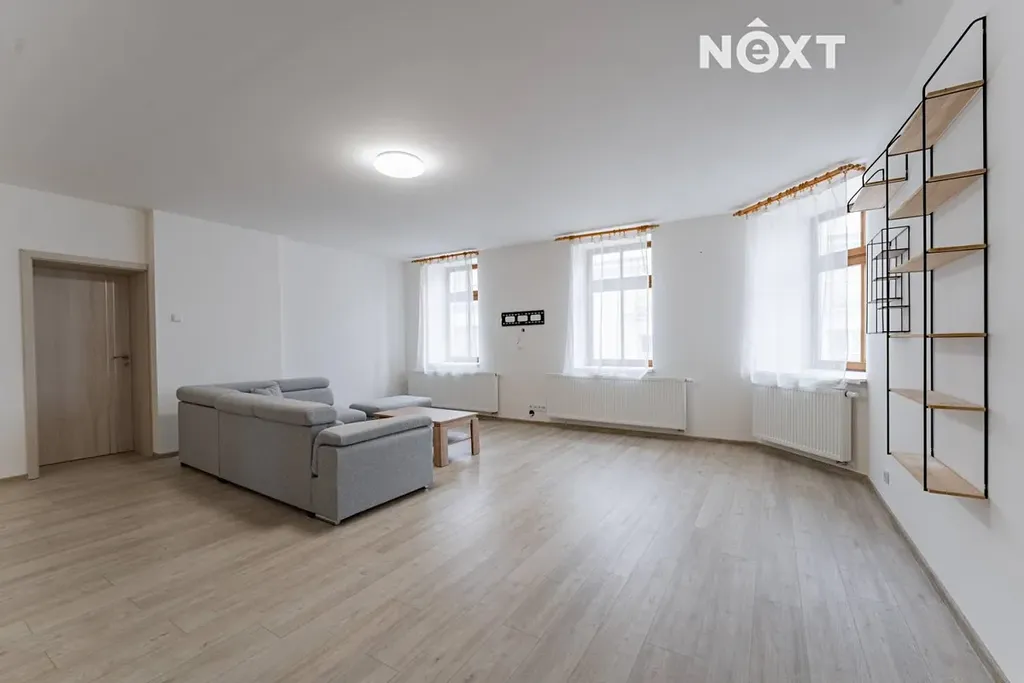 Nabízíme k pronájmu velkorysý byt o dispozici 4+1, situovaný ve 2. patře historického domu na ulici Gen. Svobody.