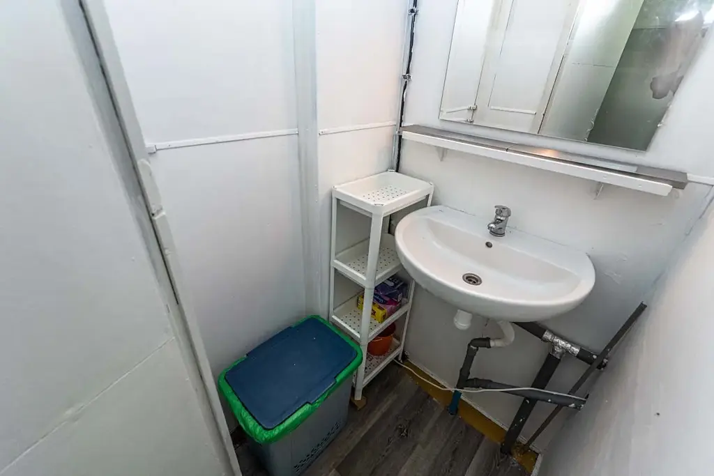 1. patro: předsíň, obytný pokoj (spaní), kuchyň, umyvadlo