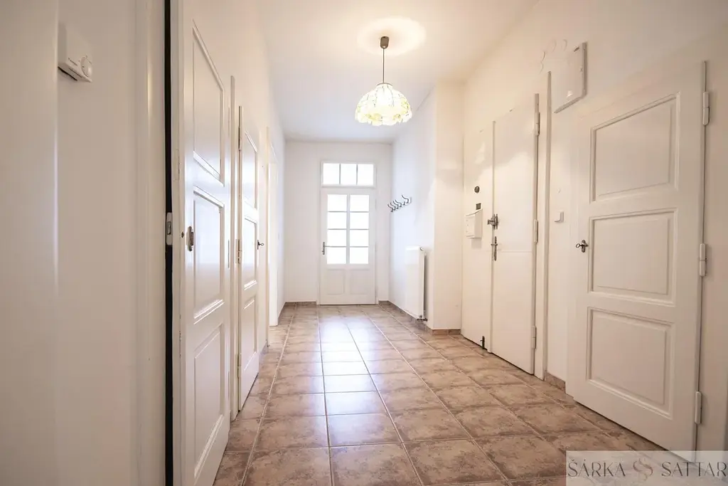 Na podlaze jsou jak parkety tak dlažba. Okna jsou nově repasovaná. Vytápění a ohřev vody je vlastním plynovým kotlem Junkers. Byt je v 4.patře cihlového domu bez výtahu. Součástí nájmu je také komora umístěná v 5.patře.