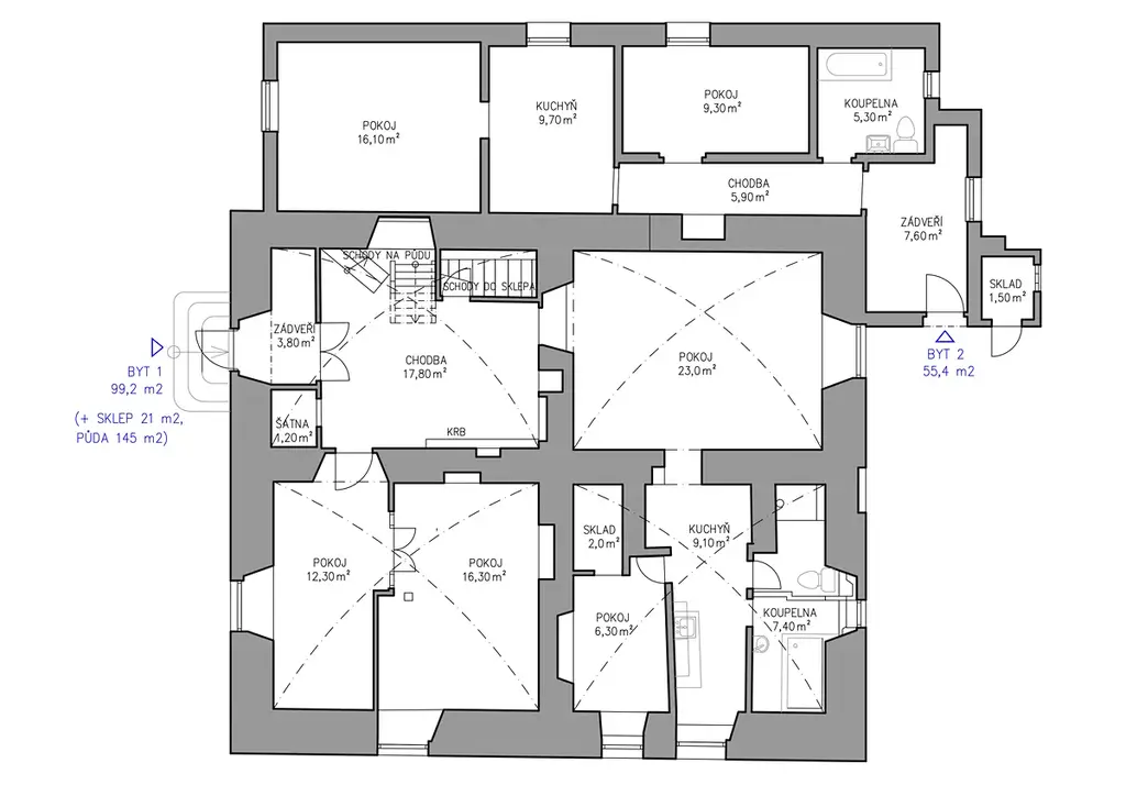 Nabízíme k prodeji rodinný dům Hrdly č.p. 38 o podlahové ploše 320 m2 na pozemku o výměře 498 m2. V domě jsou 2 bytové jednotky. Rodinný dům má sklep, přízemí a půdu. Stropy jsou masivní klenbové. Objekt je určen ke kompletní rekonstrukci nebo k demolici a následné výstavbě nového domu. Na pozemek jsou přivedeny sítě elektřiny a plynu. V cestě před objektem je vodovodní a kanalizační řad. Připojení na vodu je možné dle schválené vodovodní přípojky, dle projektu. Připojení na kanalizaci není v tento okamžik možné z kapacitních důvodů ČOV, navýšení kapacit je v řešení. Odkanalizování lze prozatím řešit například jímkou či septikem. Pozemek je v územním plánu v ploše SV - plochy smíšené obytné venkovské, maximální výška zástavby: dve nadzemní podlaží + obytné podkroví. Zastavěná plocha současného domu 230 m2 nabízí možnost vybudování tří plnohodnotných bytových jednotek.