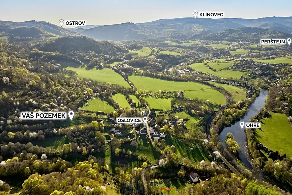 Nabízíme k prodeji velkorysý soubor pozemků o celkové výměře 13 326 m2 na jedinečném místě na úpatí Doupovských hor, v obci Oslovice nedaleko Klášterce nad Ohří. Tato nemovitost představuje vzácnou kombinaci rozlehlého soukromého prostoru a plochy určené k výstavbě v přímém doteku s přírodou. Vzhledem k celkové výměře a stavebnímu potenciálu jde o investiční příležitost, která se na trhu objevuje jen zřídka.