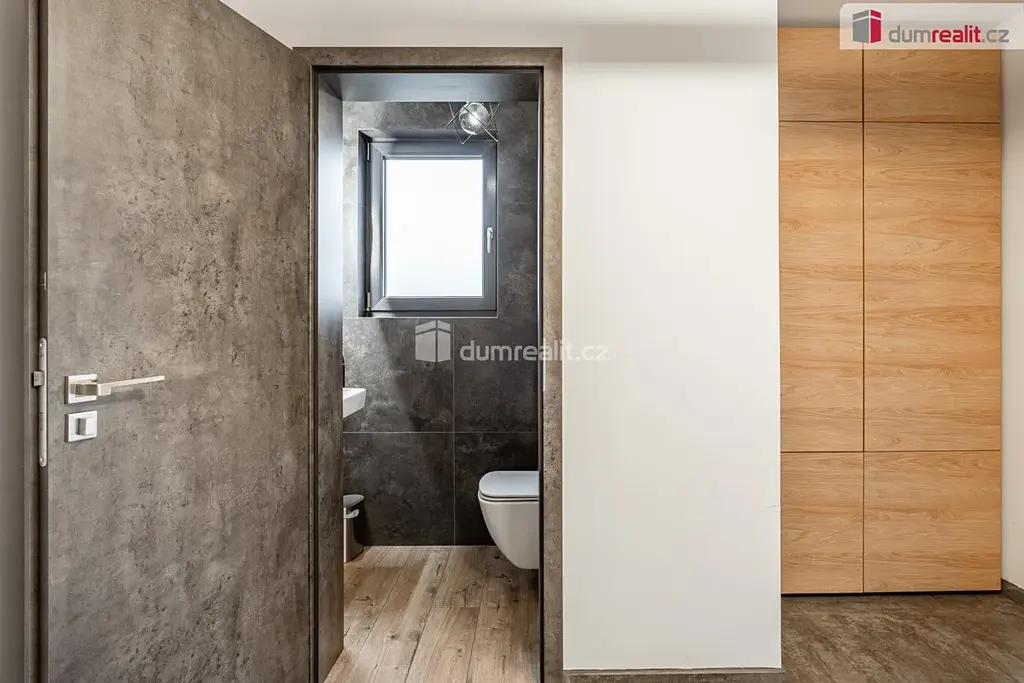 V přízemí se nachází prostorný obývací pokoj s kuchyňským koutem a jídelnou, vstupní chodba s vestavěnou skříní a samostatná toaleta.