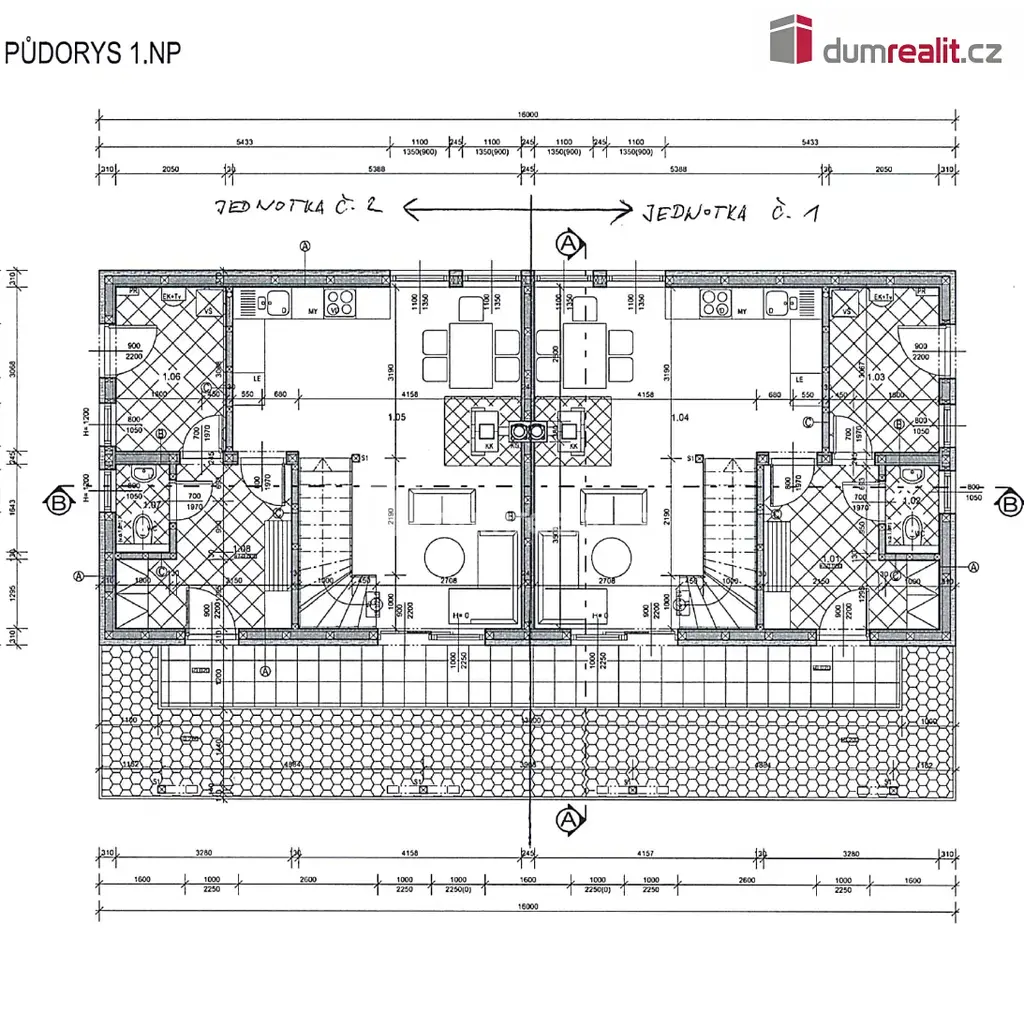 Součástí každé jednotky je samostatná technická místnost s elektrickým kotlem, bojlerem, pračkou a úložnými skříněmi.