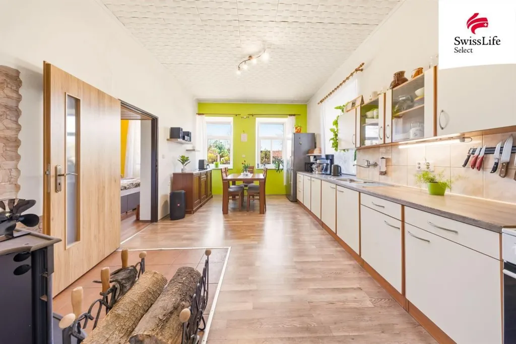 Dispozice bytu je 2+1 a užitná plocha činí 60 m2. Bytová jednotka se nachází v 1. nadzemním podlaží a je tzv. "podřezaný", takže zde nedochází k žádným nežádoucím stavům, plísni apod. Dispozice bytu: 2 pokoje, kuchyně, koupelna, wc, chodba a zádveří. Rozvody vody a elektřiny jsou nové (plast, měď). Vytápění je řešeno krbovými kamny, ohřev vody el. bojlerem. Voda a kanalizace jsou obecní.
