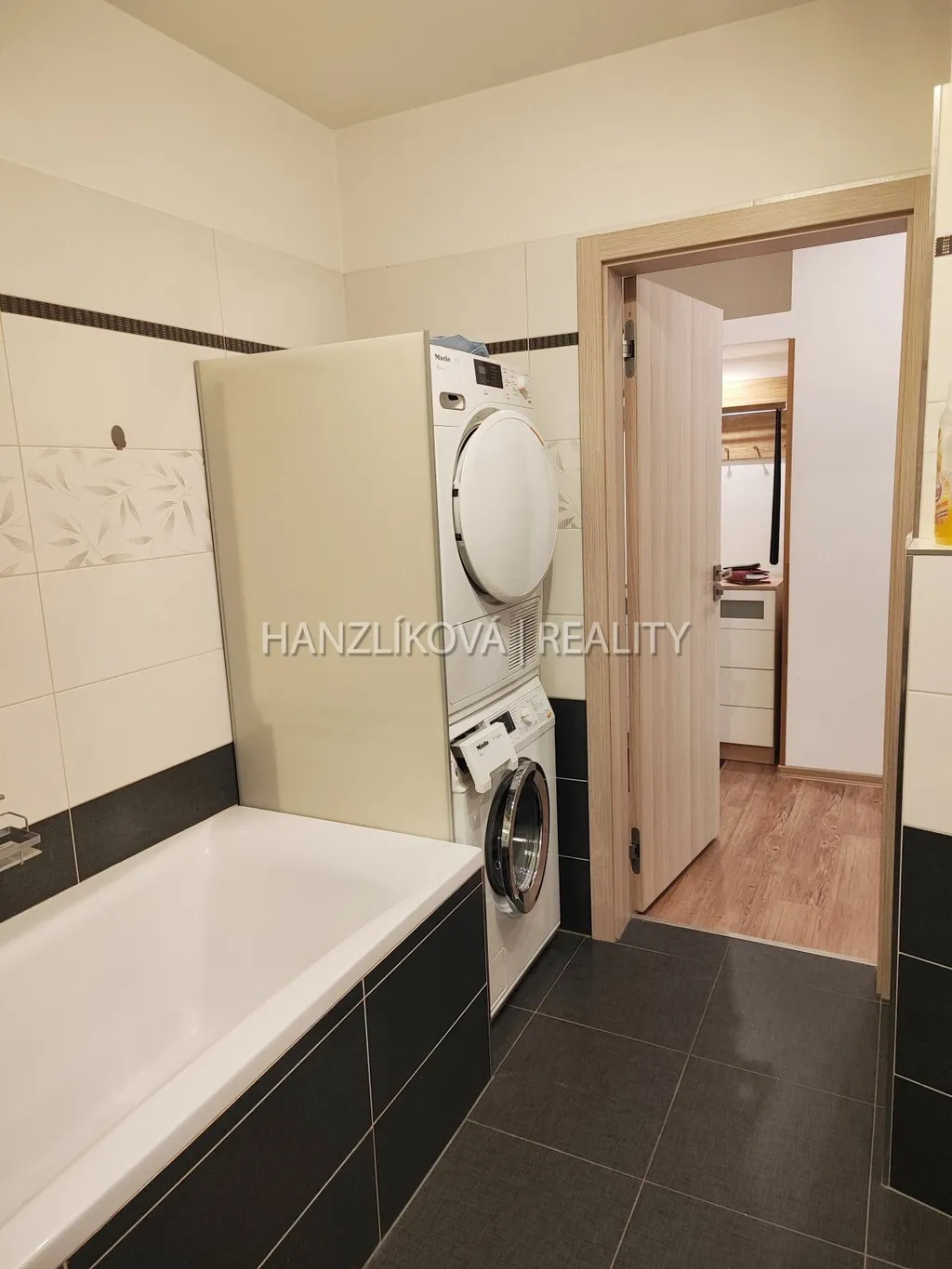 Nabízíme k pronájmu částečně zařízenou bytovou jednotku číslo E.3.02. Jedná se o byt 2+kk o výměře 74,77 m2 + terasa 13,67 m2, který se nachází ve 4.NP rezidenčního komplexu DLOUHÁ LOUKA. Byt se skládá z: prostorné chodby, šatny, koupelny s vanou a toaletou, ložnice a prostorného obývacího pokoje s částečně odděleným kuchyňským koutem, z obývacího pokoje je přístup na terasu. Byt je téměř kompletně vybaven, viz fotografie (ze spotřebičů je v bytě americká lednice, trouba, indukční varná deska, digestoř, myčka, mikrovlnka, vestavěný kávovar, pračka, sušička).