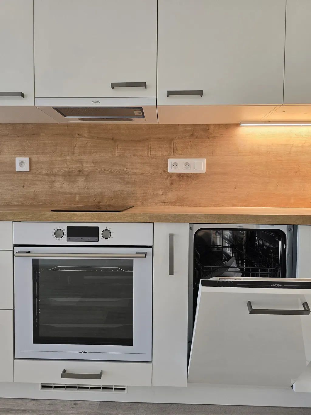 Vše, co potřebujete ke kvalitnímu bydlení. V kuchyňské části je kuchyňská linka vybavena vestavěnými spotřebiči jako je elektrická indukční varná deska, elektrická trouba, myčka, digestoř atd. V obytné části jsou velká okna zajišťující dostatek denního světla a příjemný výhled do okolí. V koupelně se sprchovým koutem, umyvadlem, topným žebříkem a toaletou je prostor pro umístění pračky. Velmi atraktivní je kombinace barev obkladů a dlažeb. Jedná se o velmi vkusně připravený byt.