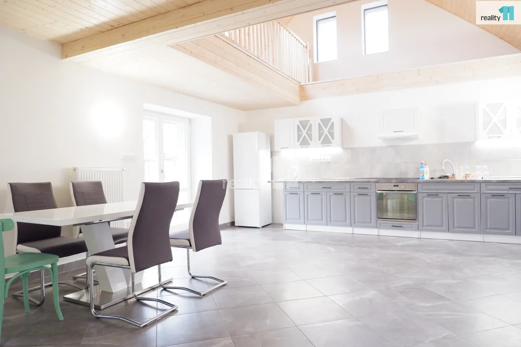 Dům se nachází v obci Vranovice, celková plocha pozemku 385 m². Příjemné pro obyvatele kteří nechtějí pečovat o rozsáhlou zahradu Orientační užitná plocha domu 135 m². V přízemí se nachází předsíň, obývací místnost s krbovými kamny 25 m², chodba a koupelna se sprchovým koutem s WC, prostorná obývací kuchyň 40m² , vchod do prostorného sklepa. Z kuchyně je vchod na terasu cca 27 m².Obytné podkroví je tvořeno jednou velkou místností, oddělené WC, koupelna s vanou. Dům prošel v roce 2021 kompletní rekonstrukcí interiéru i exteriéru. Podlahové krytiny v přízemí převážně dlažba, plovoucí podlaha , v podkroví lakované OSB desky. Střecha kvalitní plechová krytina, okna dřevěná. Vytápění je buď krbovými kamny s výměníkem, elektrokotel nebo v kuchyni je jednotka od Klima 81. Voda i kanalizace obecní. Na pozemku se nachází i studna. Na pozemku se nachází kolna cca 9 m² se zavedenou elektřinou a dřevník na dřevo.