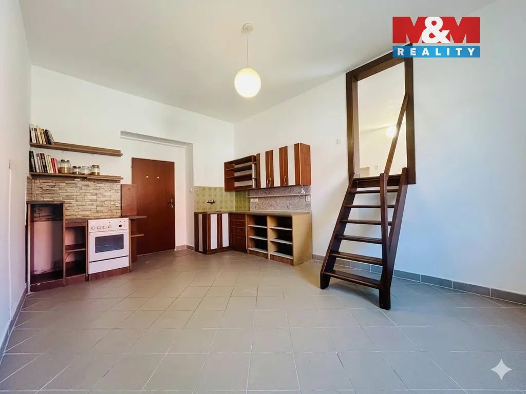 Nabízíme k dlouhodobému pronájmu atypickou bytovou jednotku o dispozici 1+kk s mezonetovým prostorem, která zaujme svou vzdušností a praktickým řešením. Byt o celkové ploše 40 m² je situován v 1. nadzemním podlaží cihlového bytového domu v centru města Švihov, kde je k dispozici kompletní občanská vybavenost v docházkové vzdálenosti. Velkou výhodou bytu je mezonetové patro, které slouží jako oddělená spací zóna a efektivně tak rozděluje obytný prostor. Koupelna a WC se nachází na chodbě hned vedle jednotky, přičemž náleží výhradně k jejímu užívání. Vytápění je řešeno dálkově, ohřev vody zajišťuje bojler.