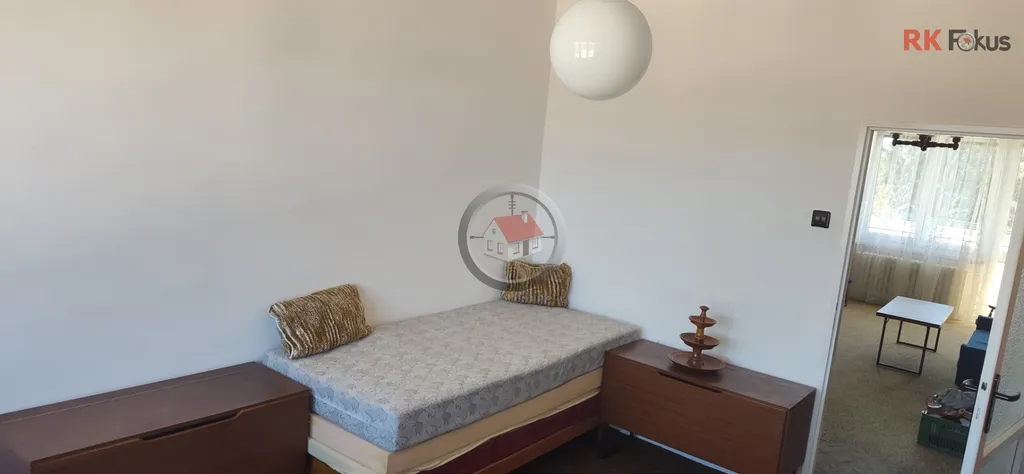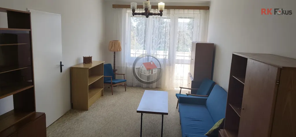 Byt je v udržovaném původním stavu a částečně vybaven: kuchyňská linka se sporákem a troubou, postele, sedačka, křeslo, komoda a vestavná skříň.