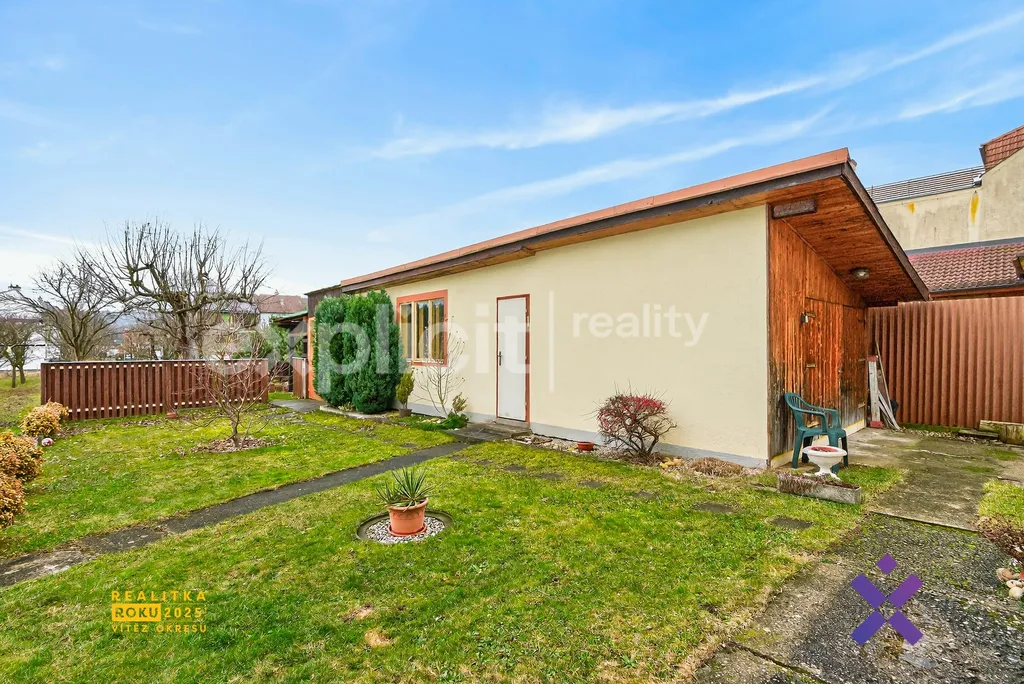 Jednou z hlavních předností této nabídky je prostorná zahrada o velikosti 802 m², která nabízí ideální prostor pro relaxaci, zahradničení, rodinné posezení či dětské hry. Součástí venkovního zázemí je také pergola vhodná pro letní posezení, zahradní domek pro uskladnění nářadí a garáž, která poskytuje pohodlné parkování i další úložný prostor.