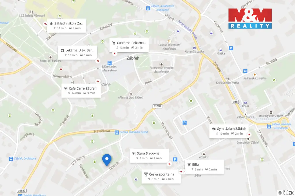 Velkým benefitem je krásný výhled na zámek Zábřeh, který dodává místu jedinečnou atmosféru. Nemovitost se nachází v klidné lokalitě s výbornou dostupností do centra a kompletní občanskou vybaveností.