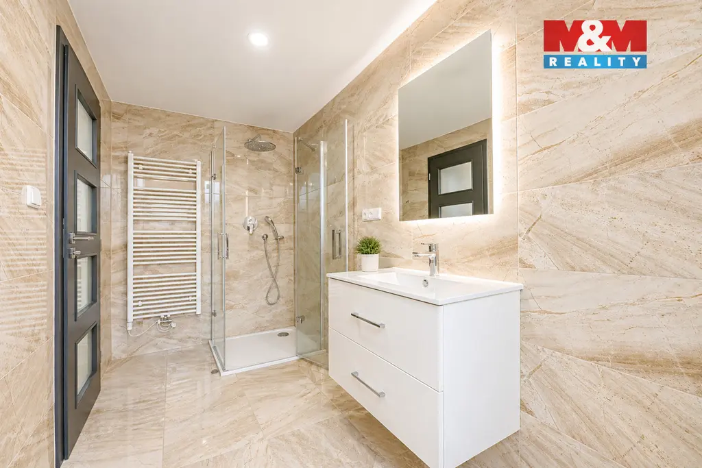 Součástí je také technická místnost a komfort bydlení zvyšuje podlahové vytápění v kombinaci s moderním tepelným čerpadlem, což zajišťuje nízké provozní náklady.